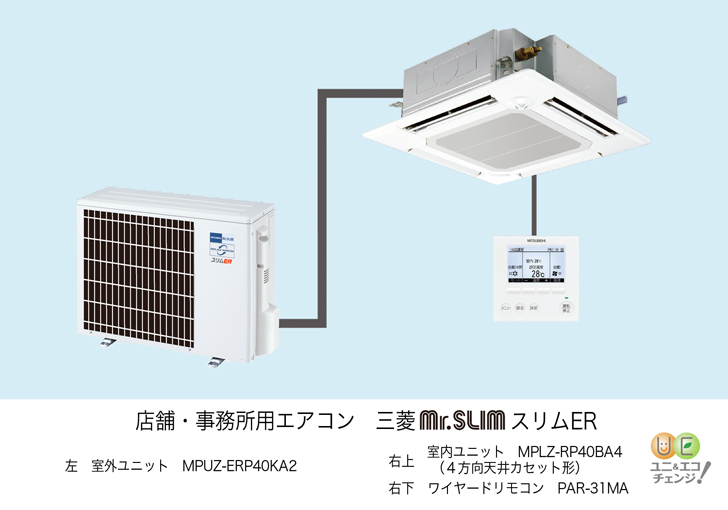 三菱電機 スリムER ファインパワーカセット ムーブアイ 天井カセット4方向 シングル(同時) 1.5馬力 [PLZ-ERP40SEEH]