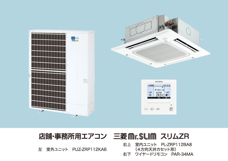 三菱電機 スリムZR コンパクトタイプ 天井カセット4方向 シングル(同時) 3馬力 [PLZ-ZRMP80SJH]